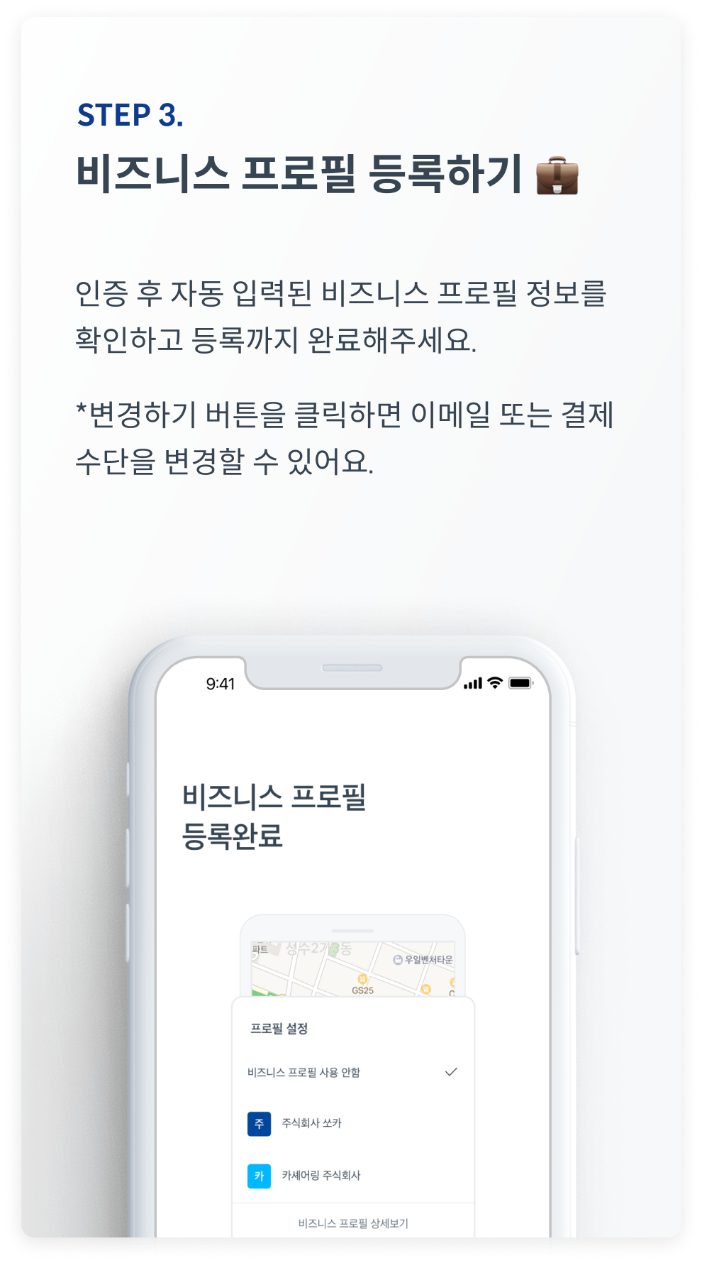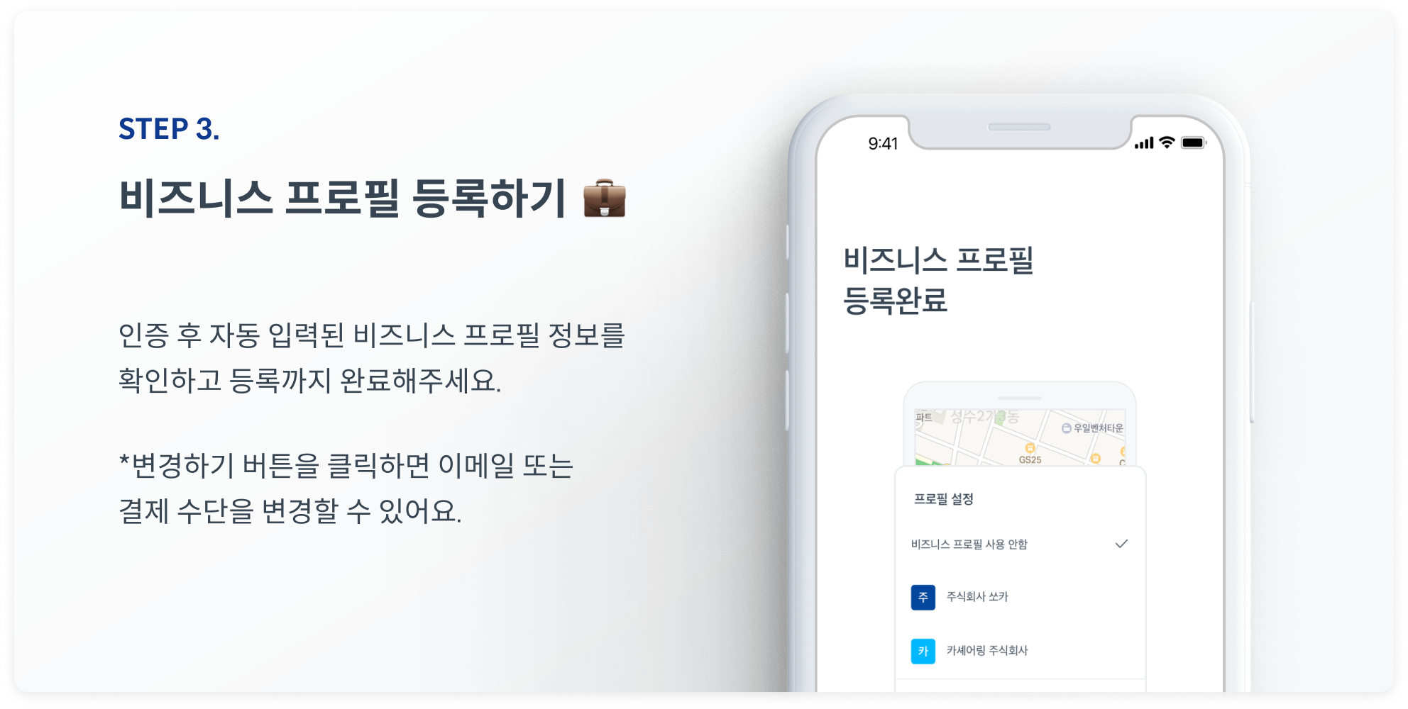 쏘카 개인 계정에 비즈니스 프로필만 등록하면 돼요!