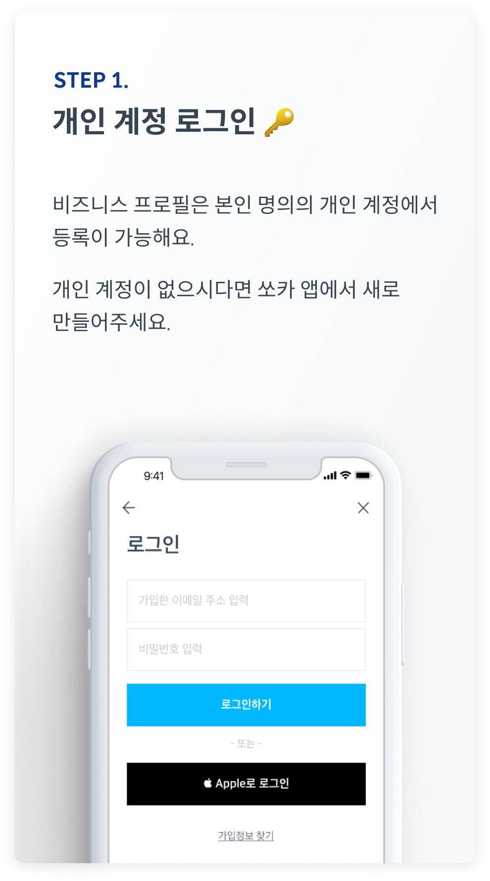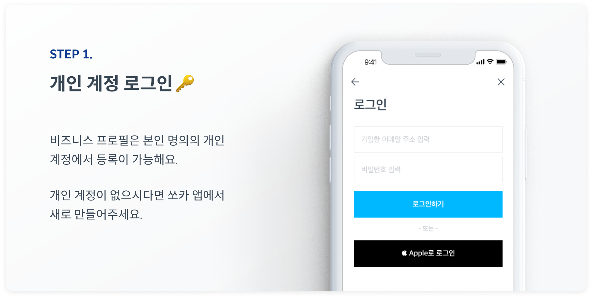 개인 계정에서 비즈니스 프로필을 등록해주세요.