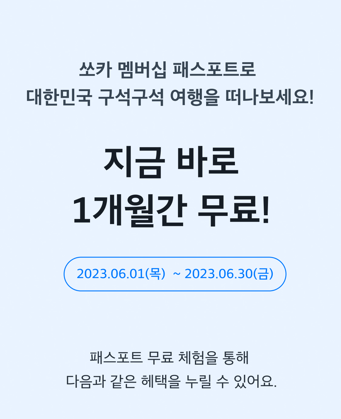 - 패스포트 무료 체험은 쏘카 패키지만 가입할 수 있습니다.